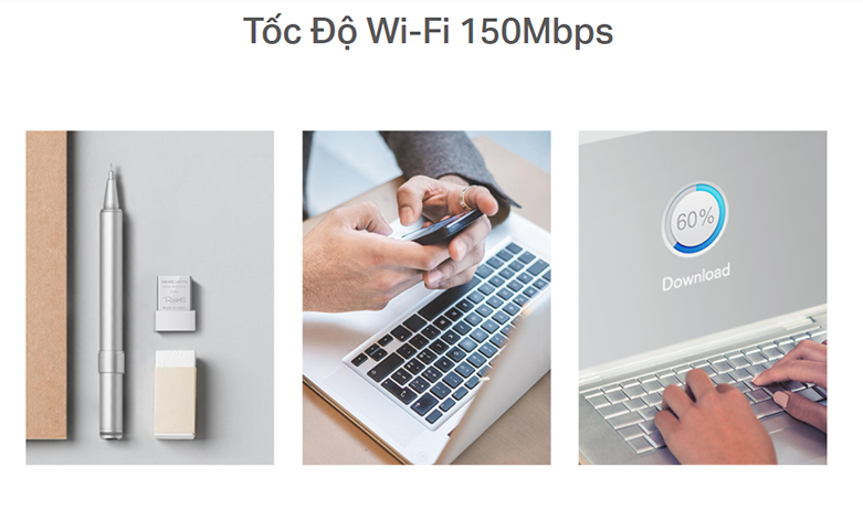 - Sản phẩm có thể đạt được tốc độ không dây lên tới 150Mbps, lý tưởng cho việc lướt web trơn tru, tải tập tin nhanh chóng, và các cuộc gọi Internet ổn định.