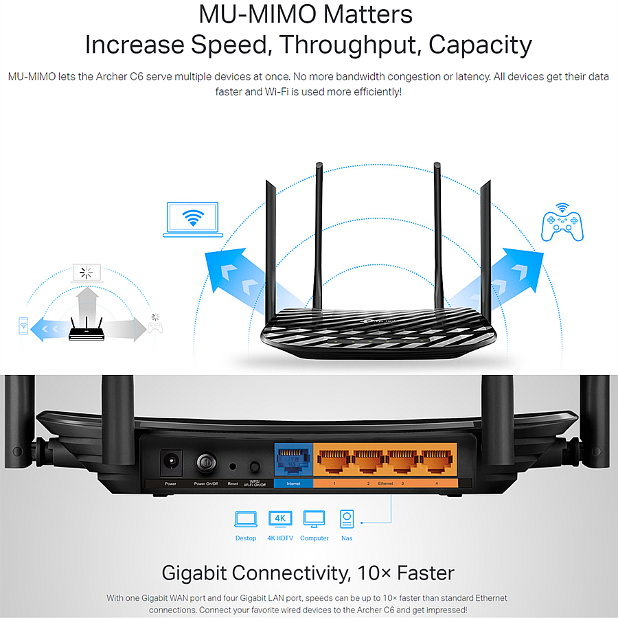 🏷️ BỘ PHÁT WIFI TP-LINK ARCHER C6 GIGABIT MU-MIMO CHUẨN AC 1200Mbps - Hàng Chính Hãng