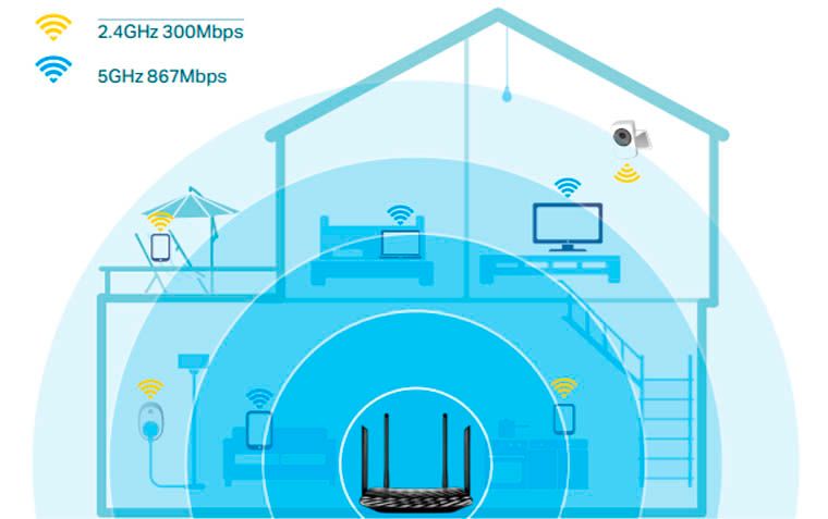 - Kết nối băng tần kép tốc độ 300Mbps trên băng tần 2.4GHz và 867Mbps trên băng tần 5GHz cho tổng băng thông khả dụng lên đến 1200Mbps.