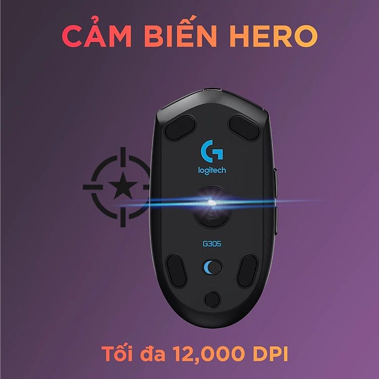 HERO là cảm biến quang học đổi mới được thiết kế bởi Logitech G để mang lại hiệu suất đẳng cấp dẫn đầu và tiết kiệm năng lượng tới 10 lần (so với hệ thệ trước). Cảm biến HERO mang lại hiệu suất ổn định và chính xác vượt trội với khả năng làm mượt, lọc và tăng tốc từ 200 tới 12.000 DPI. G304 có thể lưu tới 5 cấu hình với tối đa 5 cấp độ DPI trên bộ nhớ tích hợp