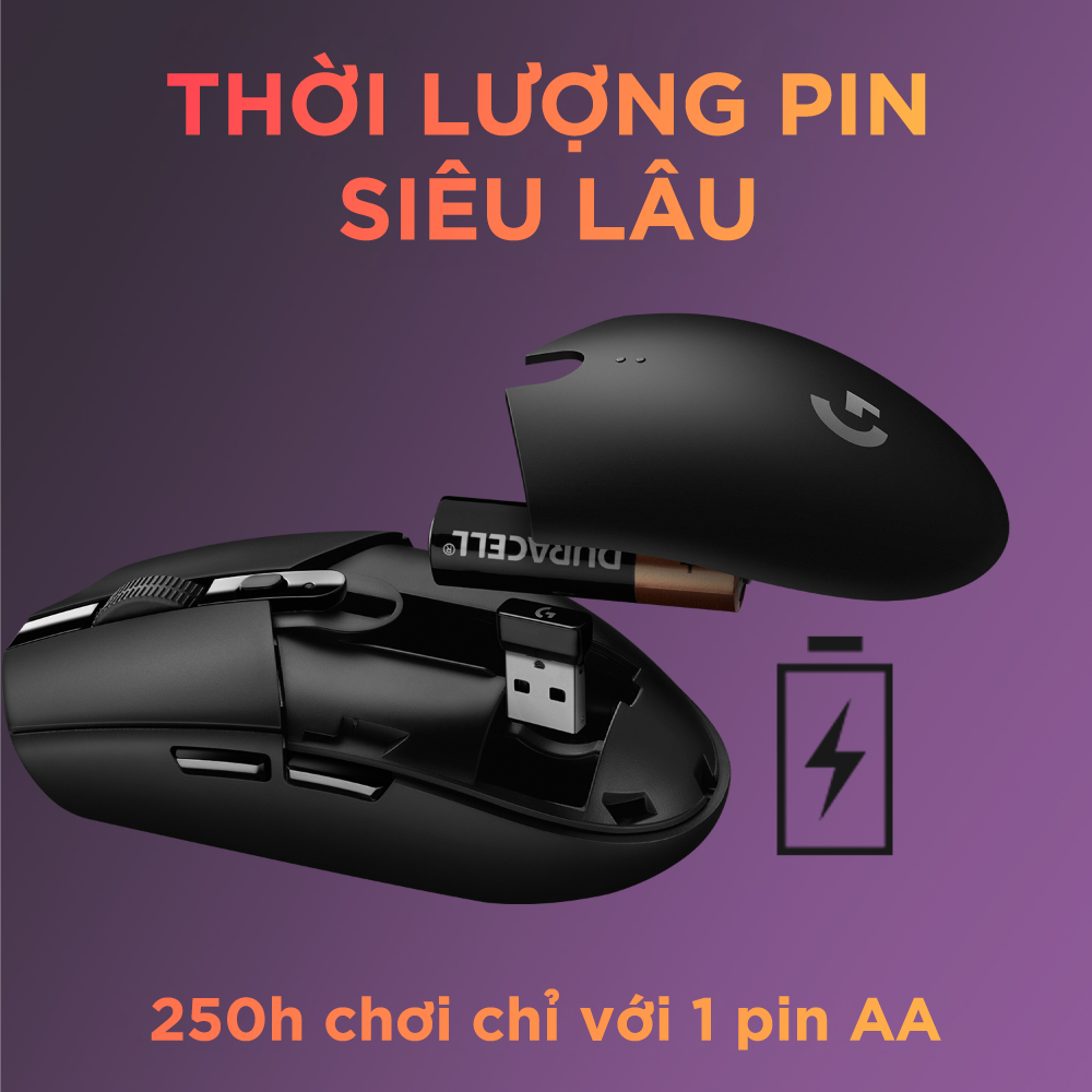 của Logitech Phần mềm Chơi game của Logitech (Logitech Gaming Software), cũng như đèn chỉ báo trên G304 sẽ thông báo cho bạn khi mức pin còn lại 15%