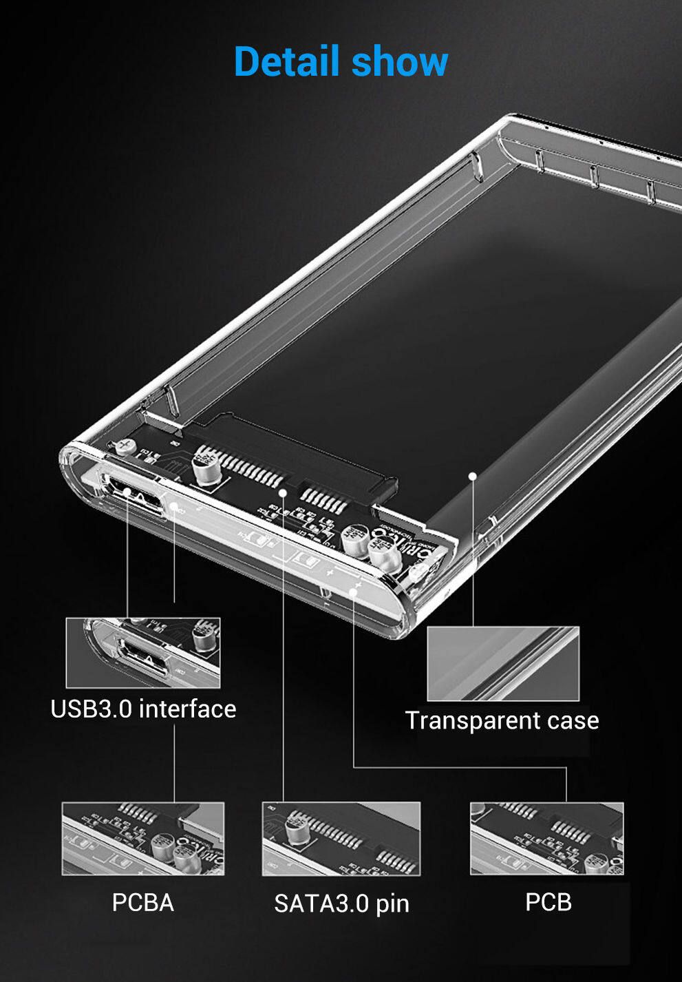 Hộp Đựng Ổ Cứng 2.5 ORICO 2139U3 USB 3.0 - Nhựa Trong Suốt - Hàng Chính Hãng