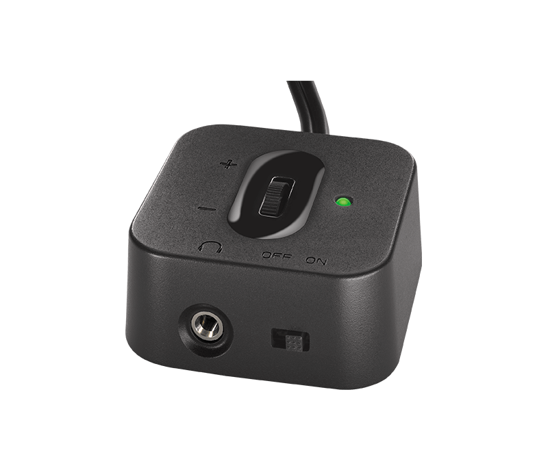 Dễ dàng điều khiển công suất, âm lượng và giắc tai nghe bằng bộ điều khiển có dây. Tùy chỉnh trải nghiệm nghe của bạn bằng cách điều chỉnh mức âm trầm bằng núm điều khiển riêng ở đằng sau loa siêu trầm.