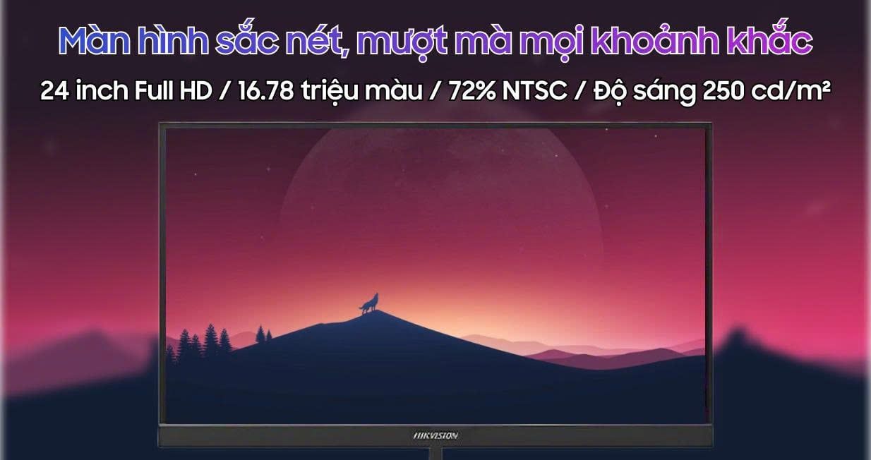 Màn hình hikvision 24 inch sở hữu độ phân giải 1920 x 1080, mang đến chất lượng hình ảnh rõ ràng và chi tiết. Giúp bạn dễ dàng xử lý công việc văn phòng, xem phim, hay chơi các tựa game yêu thích với chất lượng hình ảnh tốt nhất. Độ tương phản 1300:1 cùng độ sáng 300 cd/m² đảm bảo hình ảnh luôn sáng rõ và màu sắc chính xác, tạo ra trải nghiệm thị giác tuyệt vời.